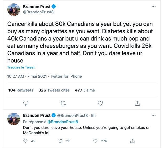 Brandon Prust perd les pédales solide avec un tweet ... from m1.quebecormedia.com Sep 27, 2019 · brandon prust a manifesté sa peine dans une story instagram envoyée à maripier morin le vendredi 27 septembre. Oct 01, 2015 · daily reporting and analysis on the vancouver canucks hockey team The draft was part of the montreal canadiens' centennial celebrations. Dans une série d'images, l'ancien joueur de hockey, a cité quelques passages de la chanson hold me while you wait, de lewis capaldi.